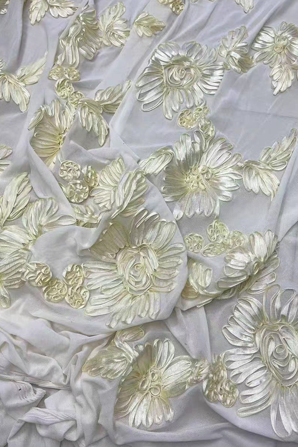 1.Fabric: 3D floral embroidery tulle, Pongee