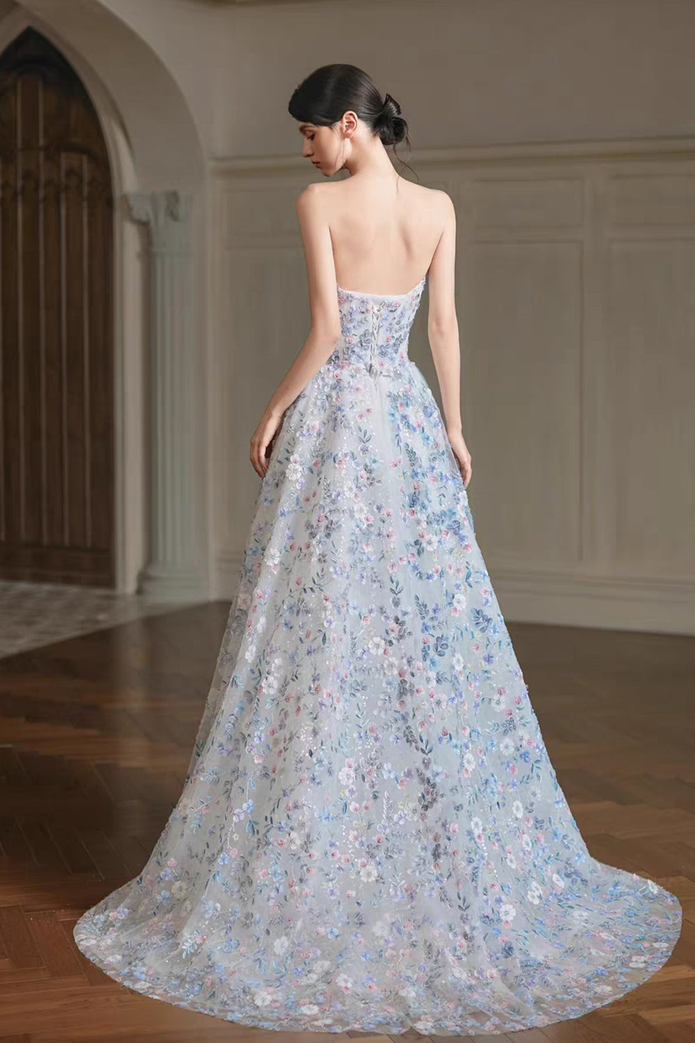 3D Sequined Beading Lace Strapless A-line Gorgeous Formal Dresses, CP1064