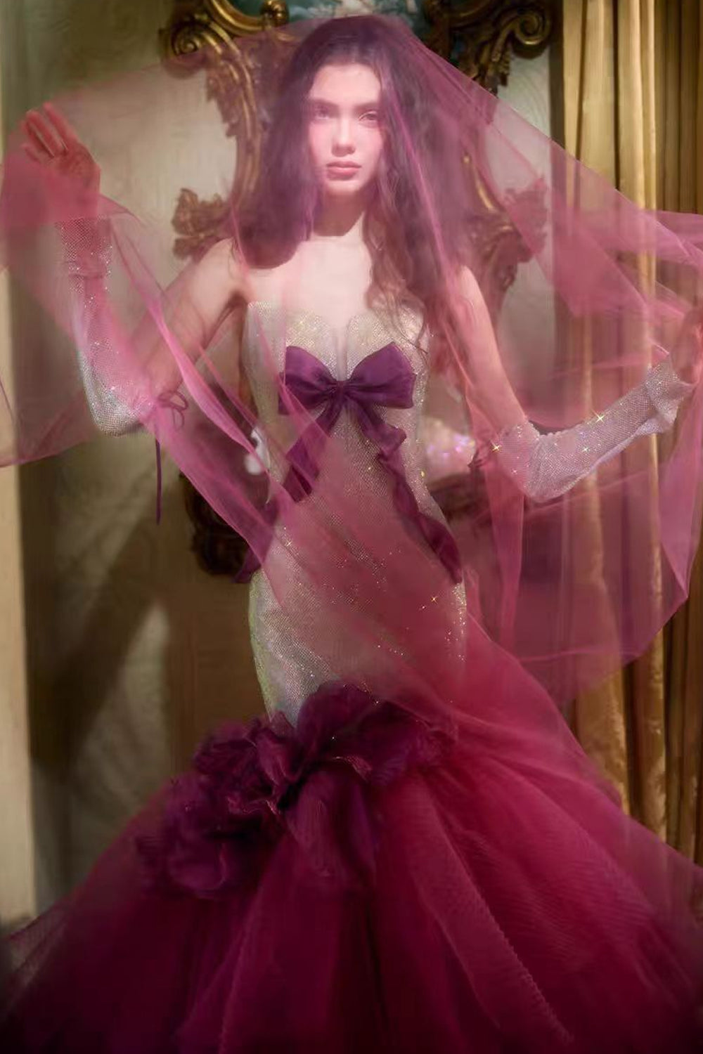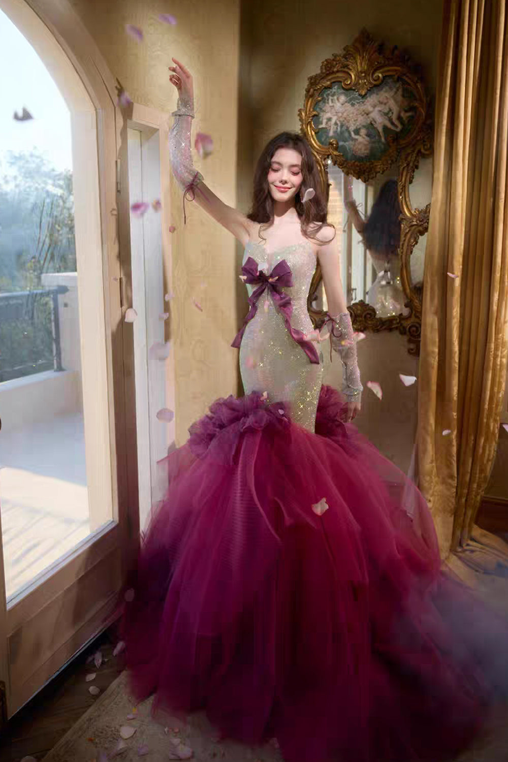 Charming Sparkly Strapless Bowknot Mermaid Prom Gown, CP1074
