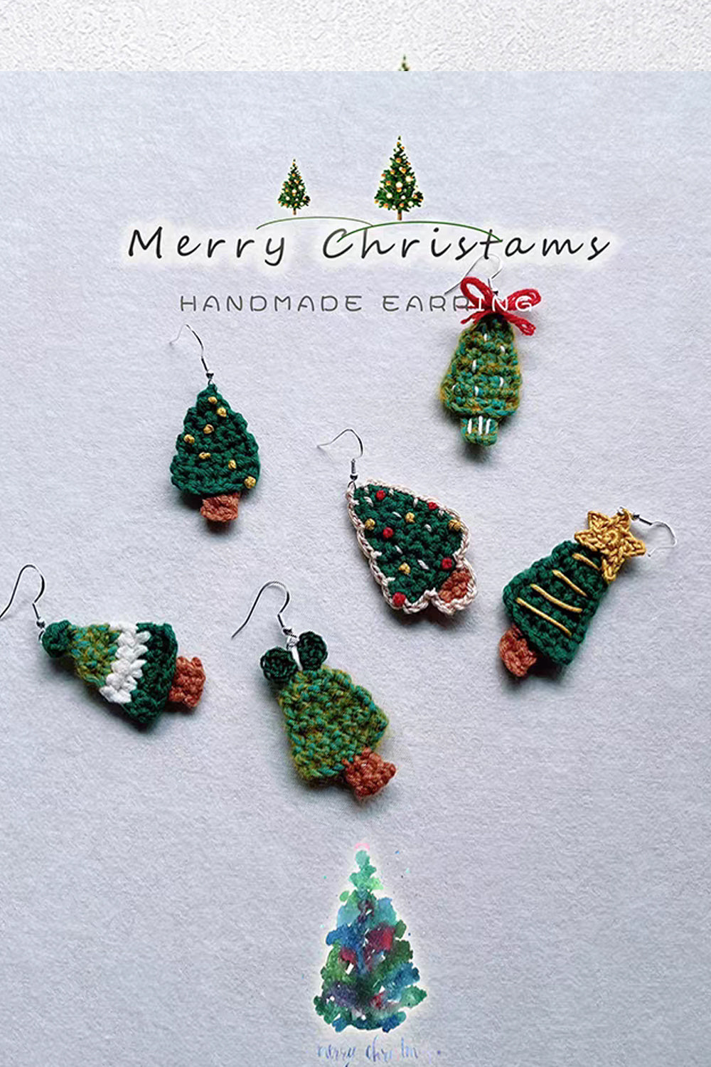 Handmade Yarn Christmas Tree Earrings