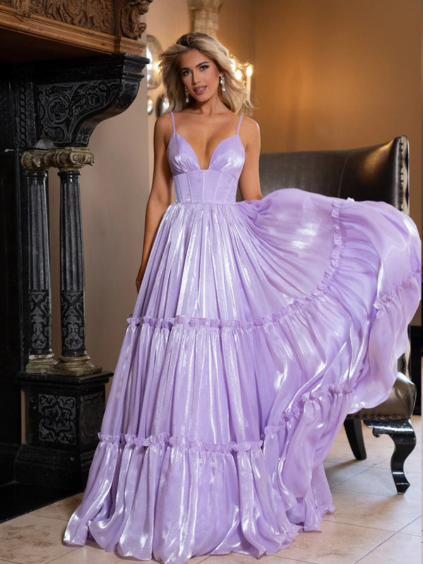 Lilac Shiny Organza V-neck Charming A-line Prom Dresses,CP1030