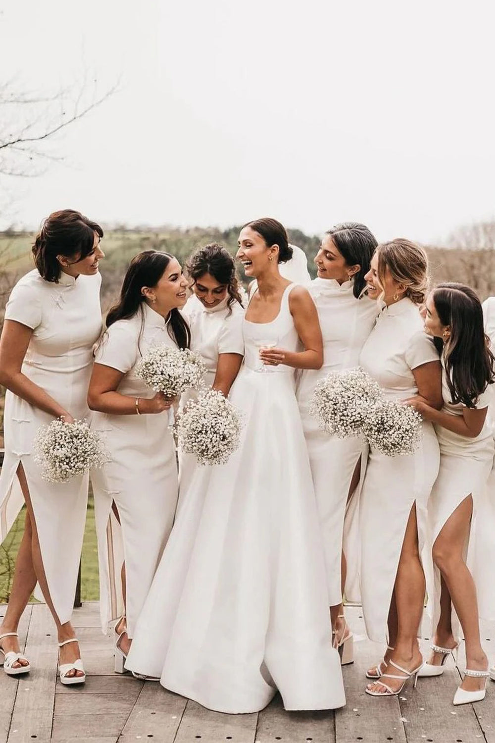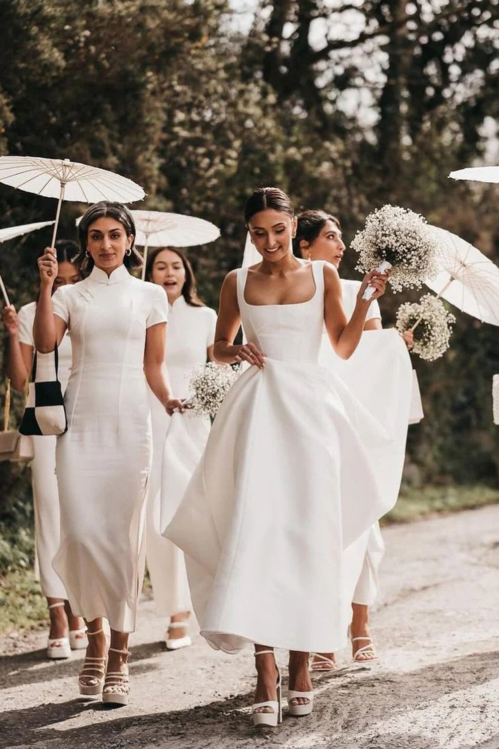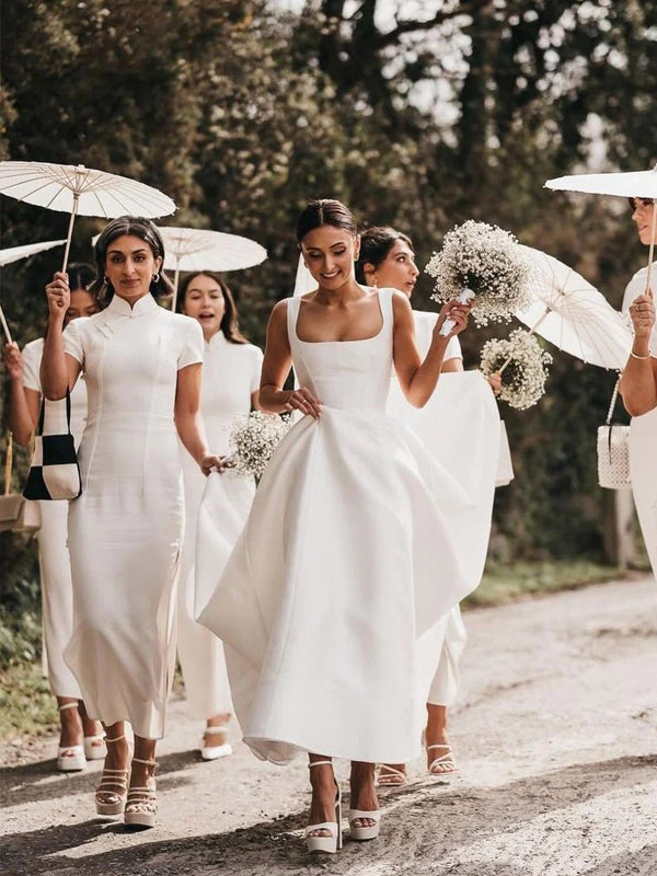 Simple Design Square Neck Ivory Satin A-line Wedding Dresses, CW0424