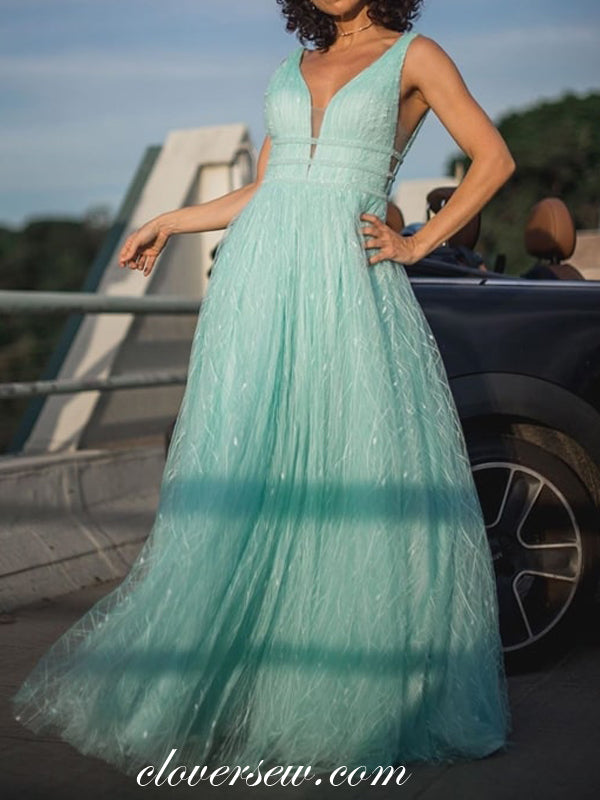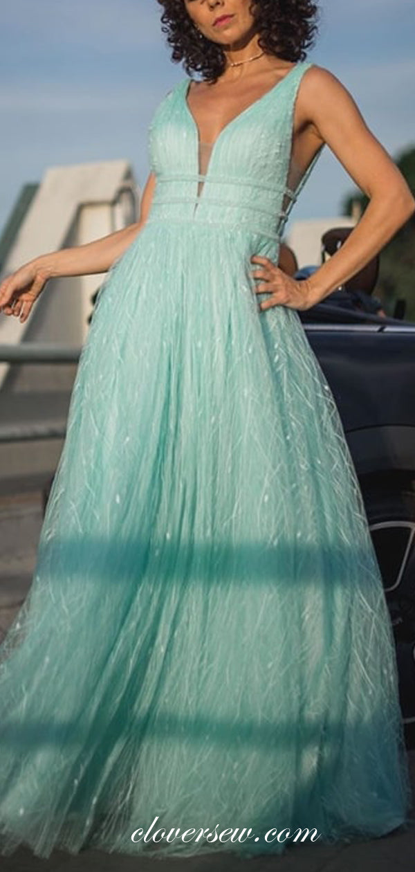 Tiffany Blue Lace Sleeveless A-line Prom Dresses,CP0312